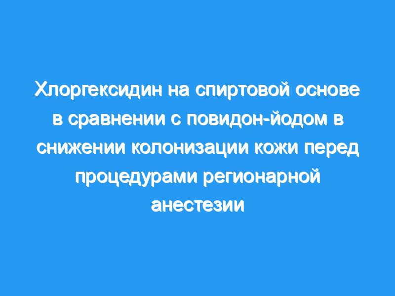 Повидон-йод является широко используемым антисептиком для подготовки кожи к регионарной анестезии. Однако было продемонстрировано, что раствор хлоргексидина лучше подходит для подготовки кожи перед введением внутрисосудистых устройств, взятием посевов крови и перед эпидуральной анестезией у детей. Информация о начальной эффективности этих дезинфицирующих средств еще не определена Целью настоящего исследования было изучение начальной эффективности раствора хлоргексидина и повидон-йода на спиртовой основе в качестве антисептика выбора для всех региональных методов. Материал и метод: Сто пациентов, обратившихся с просьбой о проведении регионарной анестезии, были рандомизированы для получения подготовки кожи либо одноразовым повидон-йодом, либо раствором хлоргексидина на спиртовой основе. Из места введения были получены две количественные культуры кожи: одна была получена непосредственно перед дезинфекцией кожи, а другая — сразу после антисептики после высыхания на воздухе.