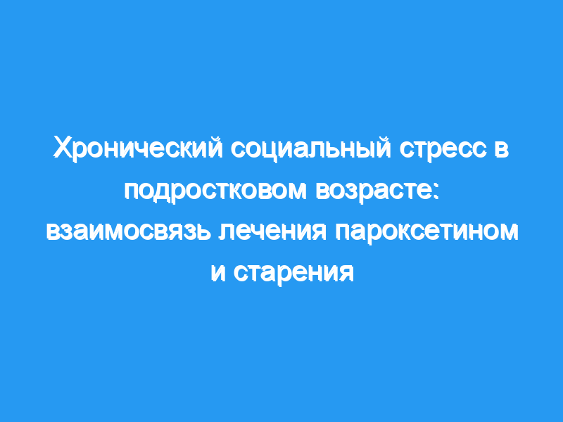 Здесь мы изучали прямое и длительное воздействие хронического социального стресса в подростковом возрасте и влияние хроническое лечение пароксетином СИОЗС у взрослых и пожилых животных.