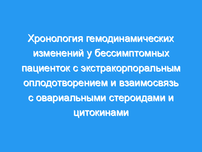 Охарактеризовать хронологию гемодинамических изменений в циклах экстракорпорального оплодотворения (ЭКО) и их взаимосвязь с циркулирующими в яичниках стероидами, цитокинами и их медиатором оксидом азота. Дизайн: Проспективное, поперечное исследование.