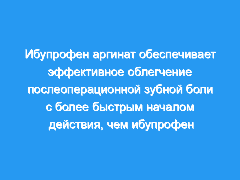 Эти результаты в целом свидетельствуют о том, что ибупрофен аргинат при приеме в дозах, эквивалентных коммерчески доступным препаратам ибупрофена, вызывает более быстрое наступление анальгезии.