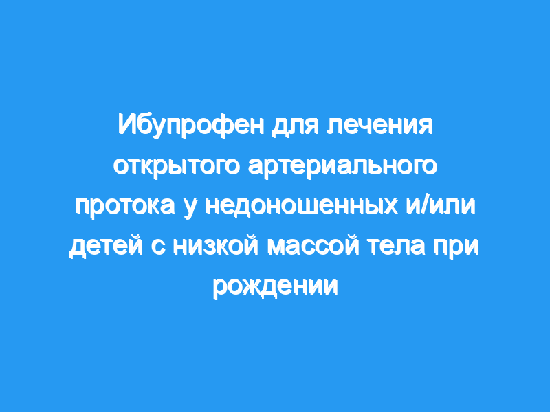 Для определения эффективности и безопасности ибупрофена по сравнению с плацебо или без вмешательства для закрытия КПК у недоношенных и/или детей с низкой массой тела при рождении. Определить эффективность и безопасность ибупрофена по сравнению с другими ингибиторами циклооксигеназы (включая индометацин, мефенамовую кислоту) для закрытия КПК у недоношенных и/или детей с низкой массой тела при рождении. Стратегия поиска: Рандомизированные или квазирандомизированные контролируемые исследования (РКИ), сравнивающие ибупрофен с плацебо или индометацином или мефенамовой кислотой для терапии КПК, были определены путем поиска в Центральном реестре контролируемых исследований Кокрейна (CENTRAL, The Cochrane Library, выпуск 2, 2005), MEDLINE (1996 — июль 2005), CINAHL (1982 — июль 2005), EMBASE (1980 — июль 2005), справочные списки опубликованных РКИ и тезисы докладов Педиатрических академических обществ и совещаний Европейского общества педиатрических исследований, опубликованные в журнале Pediatric Research (1991 — апрель 2005). Никаких языковых ограничений не применялось. Критерии отбора: 1) ДИЗАЙН: Рандомизированные или квазирандомизированные контролируемые исследования 2) ПОПУЛЯЦИЯ: Недоношенные (< 37 недель гестации) или дети с низкой массой тела при рождении (< 2500 г) с клинически или эхокардиографически диагностированным КПК 3) ВМЕШАТЕЛЬСТВО: Введение ибупрофена для закрытия КПК 4) ИСХОДЫ: Сообщалось по крайней мере об одном из следующих исходов: неспособность закрыть КПК, смертность, хирургическое перевязывание, внутрижелудочковое кровоизлияние (ВЖК), перивентрикулярная лейкомаляция (ПВЛ), НЭК, снижение диуреза, ретинопатия недоношенных (РОП), хроническое заболевание легких (ХБЛ), сепсис, дни на дополнительный кислород. Сбор и анализ данных: По крайней мере, два автора работали независимо на каждом этапе первоначального обзора, затем сравнивали результаты и устраняли различия. Текущее обновление было проведено одним автором (АО). Методологическое качество приемлемых исследований оценивалось в соответствии с ослеплением рандомизации, вмешательством и оценкой результатов, а также полнотой наблюдения. Взвешенные эффекты лечения, рассчитанные с использованием RevMan 4.2, включали типичный относительный риск (RR), типичную разницу в риске (RD), количество, необходимое для лечения (NNT) или вреда (NNH), и средневзвешенную разницу (WMD), все с 95% доверительными интервалами (ДИ). Для мета-анализа использовалась модель с фиксированным эффектом. Для оценки целесообразности объединения данных были проведены тесты на неоднородность, включая I(2 ).