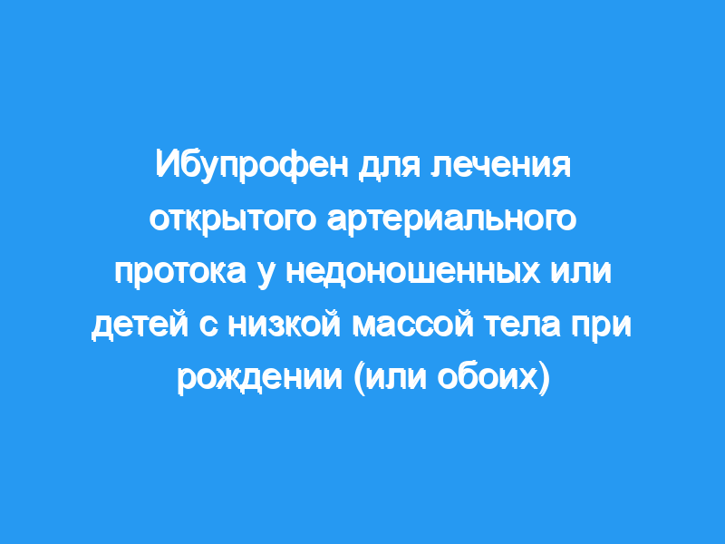 Для определения эффективности и безопасности ибупрофена по сравнению с индометацином, другим ингибитором циклооксигеназы, плацебо или без вмешательства для закрытия открытого артериального протока у недоношенных детей с низкой массой тела при рождении или недоношенных детей с низкой массой тела при рождении. Методы поиска: Мы искали В Библиотеке Кокрейна, MEDLINE, EMBASE, Clincialtrials.gov , Controlled-trials.com , и www.abstracts2view.com/pas в мае 2014 года. Критерии отбора: Рандомизированные или квазирандомизированные контролируемые испытания ибупрофена для лечения КПК у новорожденных. Сбор и анализ данных: Сбор и анализ данных соответствовали методам Cochrane Neonatal Review Group.