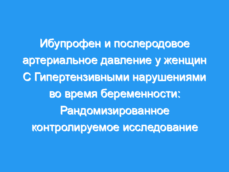 Оценить влияние ибупрофена на артериальное давление у женщин с диагнозом гипертензивных расстройств беременности и легкой артериальной гипертензией в ближайшем послеродовом периоде.