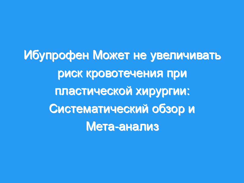 Ибупрофен — это полезный препарат в условиях хирургического вмешательства, обладающий множеством полезных эффектов. Этот мета-анализ представляет собой небольшой набор высококачественных исследований, предполагающих, что ибупрофен обеспечивает контроль боли, эквивалентный наркотикам. Важно отметить, что ибупрофен не был связан с повышенным риском кровотечения. Для дальнейшего выяснения этого вопроса потребуются дальнейшие крупные исследования, но ибупрофен является безопасным послеоперационным анальгетиком у пациентов, подвергающихся обычным процедурам пластической хирургии мягких тканей. Клинический вопрос/уровень доказательности: Терапевтический, II.