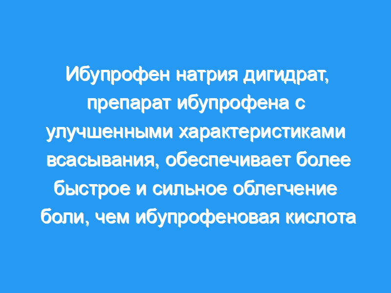 Ибупрофен натрия дигидрат обеспечивает более быстрое и эффективное обезболивание в течение первого часа после приема по сравнению с обычным препаратом ибупрофеновой кислоты. Профили переносимости аналогичны.