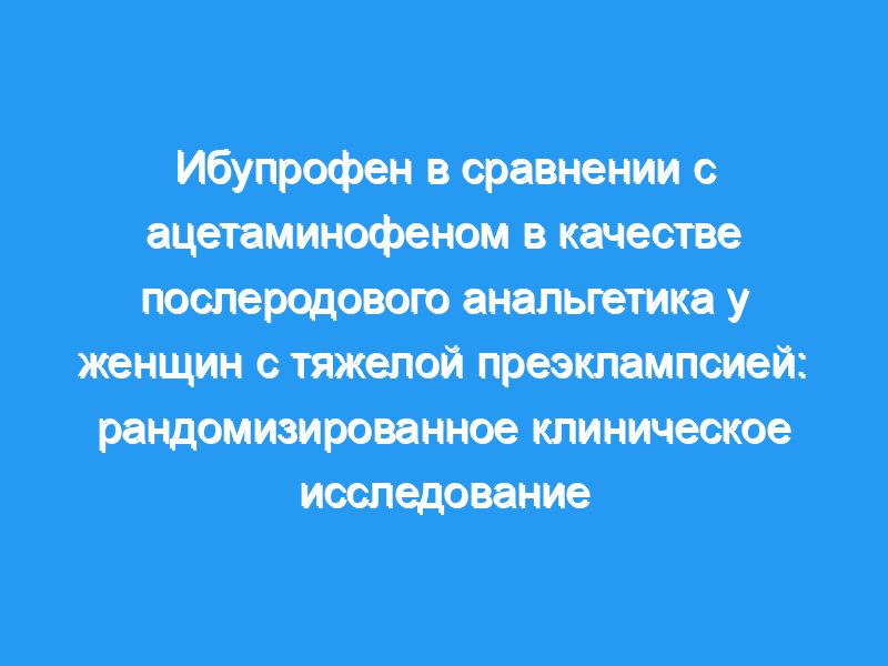 Было проведено рандомизированное контролируемое исследование у женщин с тяжелой преэклампсией или наложенной преэклампсией после вагинальных родов. Пациентка была выбрана случайным образом для приема либо 400 мг ибупрофена каждые 8 ч, либо 1 г ацетаминофена каждые 6 ч в послеродовой период. Основной переменной была систолическая гипертензия ≥150 мм рт.ст. и/или диастолическая гипертензия ≥100 мм рт.ст. после первых 24 ч после родов. Вторичными переменными были показатели артериального давления через 24, 48, 72 и 96 ч после родов и осложнений у матери.