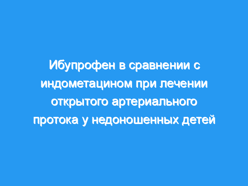 Персистирующий открытый артериальный проток (КПК) является распространенным заболеванием у недоношенных детей. Наиболее часто используемым фармакологическим средством для закрытия протока является индометацин, но он может влиять на мозговой, почечный и брыжеечный кровоток. Недавно было показано, что ибупрофен эффективен при закрытии КПК с меньшими гемодинамическими эффектами. В этом исследовании мы сравнили безопасность и эффективность ибупрофена и индометацина при лечении КПК у недоношенных детей.