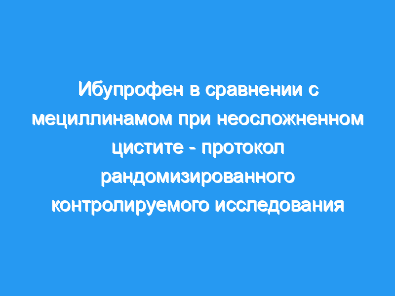 Хотя неосложненный цистит часто самоограничивается, большинству таких пациентов будет назначено лечение антибиотиками. Мы исследуем, является ли лечение цистита НПВП таким же эффективным, как антибиотик, в достижении разрешения симптомов. Методы/дизайн: Это рандомизированное контролируемое двойное слепое исследование, проводимое в соответствии с принципами надлежащей клинической практики. Женщины в возрасте от 18 до 60 лет с симптомами неосложненного цистита проходят скрининг на предмет соответствия требованиям. 500 женщин из четырех центров в Норвегии, Швеции и Дании получают лечение 600 мг ибупрофена три раза в день или 200 мг мециллинама три раза в день в течение трех дней. Распределение проводится с использованием блочной рандомизации. Первичным результатом является количество пациентов, которые чувствуют себя излеченными к четвертому дню, как записано в дневнике. Нежелательные явления будут обрабатываться и регистрироваться в соответствии с надлежащей клинической практикой.