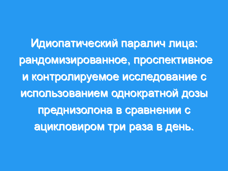 Согласно этим результатам, при 10-дневном цикле лечения ацикловир, назначаемый по 800 мг три раза, не так полезен, как преднизолон, назначаемый по 1 мг/кг массы тела один раз в день у пациентов с идиопатическим параличом лицевого нерва.