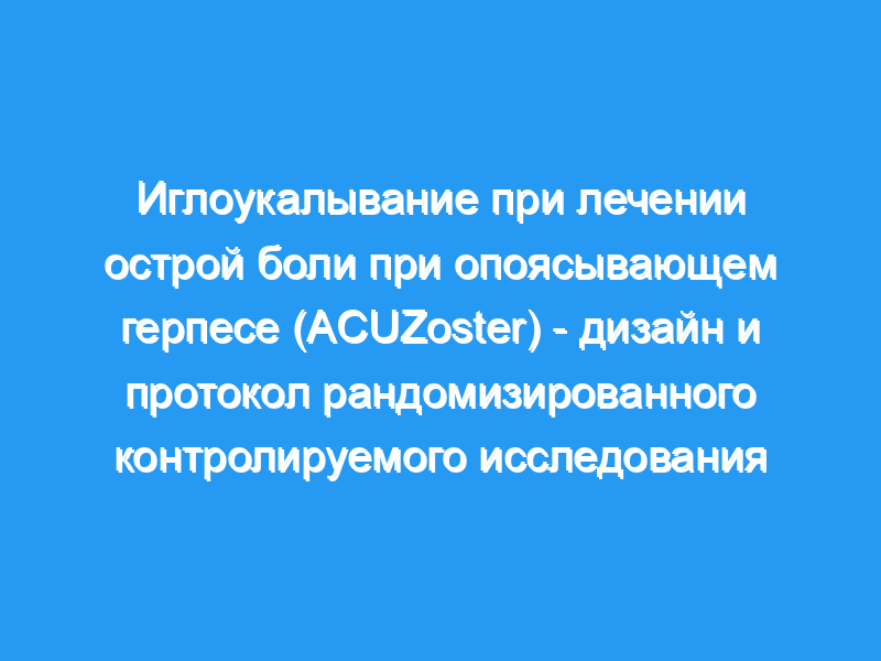 Это исследование является первым крупномасштабным рандомизированным плацебо-контролируемым исследованием для оценки эффективности иглоукалывания по сравнению с габапентином и фиктивным лечением и предоставит ценную новую информацию о клинических и физиологических эффектах иглоукалывания и габапентина при лечении острой боли при опоясывающем герпесе. Исследование было прагматично разработано, чтобы гарантировать, что результаты исследования могут быть внедрены в клиническую практику, если будет доказано, что иглоукалывание является эффективной стратегией лечения острой боли при опоясывающем герпесе. Пробная регистрация: NCT00885586.