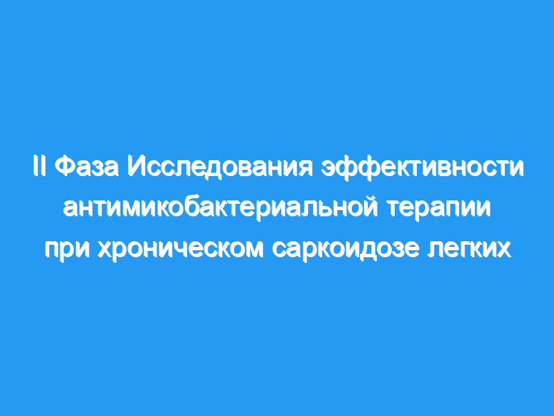Одноцентровое исследование I фазы показало, что 8 недель антимикобактериальной терапии улучшили ФЖЕЛ при саркоидозе. Оценки безопасности и эффективности в многоцентровой когорте не проводились. Вопрос исследования: Целью данного исследования было определение безопасности и эффективности антимикобактериальной терапии на физиологических и иммунологических конечных точках саркоидоза. План и методы исследования: В двойном слепом плацебо-контролируемом многоцентровом исследовании пациенты с саркоидозом легких были рандомизированы на 16 недель одновременного приема левофлоксацина, этамбутола, азитромицина и рифабутина (CLEAR) или соответствующего плацебо для изучения влияния на ФЖЕЛ. Первичным результатом было сравнение изменения процента прогнозируемой ФЖЕЛ у пациентов, рандомизированных для получения КЛИР или плацебо в дополнение к их базовому режиму иммуносупрессии. Вторичные исходы включали дистанцию 6-минутной ходьбы (6MWD), оценку респираторного опросника Святого Георгия (SGRQ), нежелательные явления и снижение иммунных ответов микобактерий, рано секретируемых антигенной мишенью 6 кДа (ESAT-6).