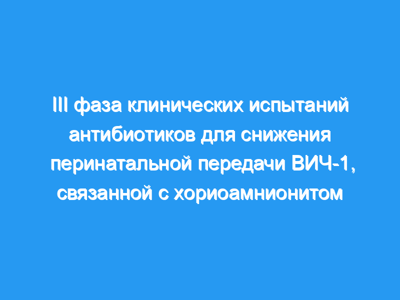В Африке было проведено многоцентровое исследование для оценки эффективности антибиотиков для снижения передачи ВИЧ-1 от матери ребенку (ППМР). Дизайн: Рандомизированное, двойное слепое, плацебо-контролируемое клиническое исследование III фазы.