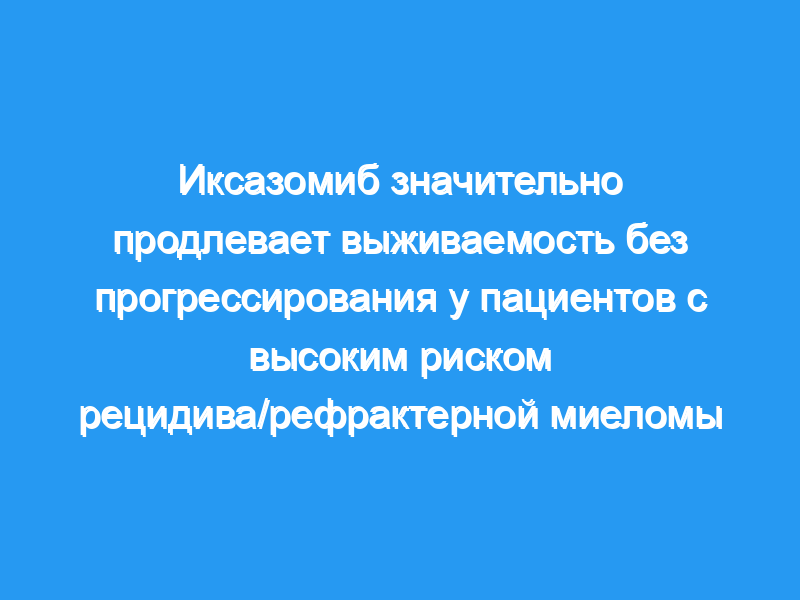 Известно, что некоторые цитогенетические нарушения отрицательно влияют на исходы у пациентов с множественной миеломой (ММ). Исследование 3-й фазы TOURMALINE-MM1 продемонстрировало значительное улучшение выживаемости без прогрессирования (PFS) при применении иксазомиба-леналидомида-дексаметазона (IRd) по сравнению с плацебо-леналидомидом-дексаметазоном (плацебо-Rd). В этом заранее спланированном анализе оценивалась эффективность и безопасность IRd по сравнению с плацебо-Rd в соответствии с цитогенетическим риском, оцененным с использованием флуоресцентной гибридизации in situ.