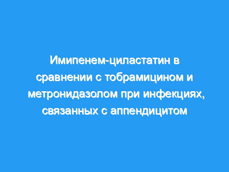 Эффективность имипенема-циластатина сравнивали с эффективностью тобрамицина и метронидазола для лечения абдоминальных инфекций, связанных с аппендицитом, у детей в открытом рандомизированном исследовании.