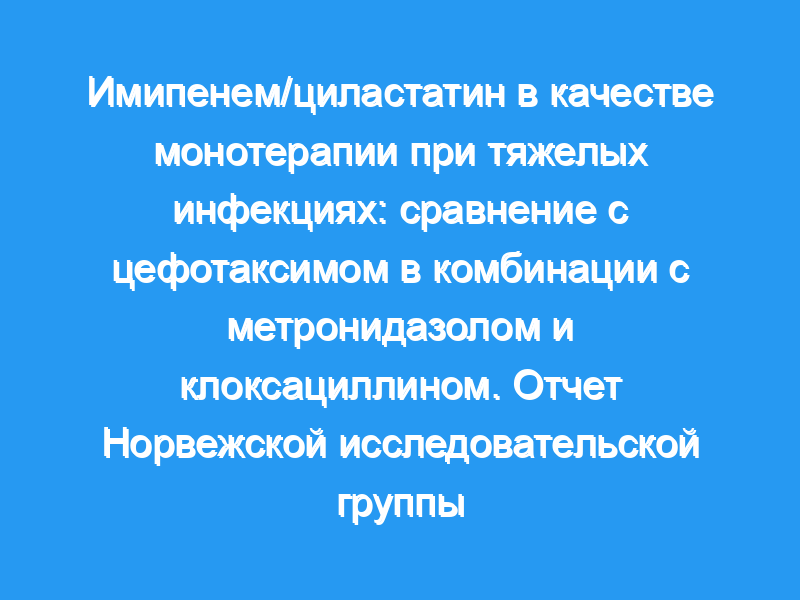 В рандомизированном и скоординированном многоцентровом исследовании 143 пациента с тяжелыми инфекциями получали лечение либо имипенемом/циластатином (72, группа I/C), либо цефотаксимом в сочетании с метронидазолом и дополнительным клоксациллином (71, группа CX/M/CL). 67 пациентов в группе I/C и 65 в группе CX/M/CL были оценены на предмет клинической эффективности.