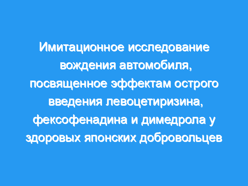 Левоцетиризин и фексофенадин не ухудшали психомоторную работоспособность у испытуемых, выполнявших имитацию вождения автомобиля, в то время как димедрол действительно ухудшал психомоторную работоспособность у испытуемых. Авторское право © 2016 John Wiley & Sons, Ltd.