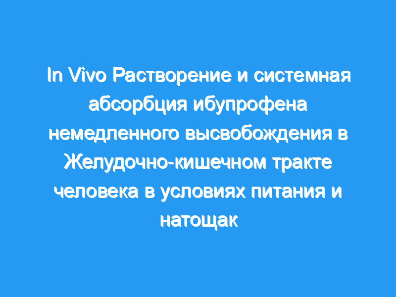 Целью данного клинического исследования было оценить растворение препарата in vivo и системную абсорбцию препарата ибупрофена класса BCS IIa в условиях питания и натощак путем прямого отбора проб из желудка и содержимое просвета тонкой кишки.