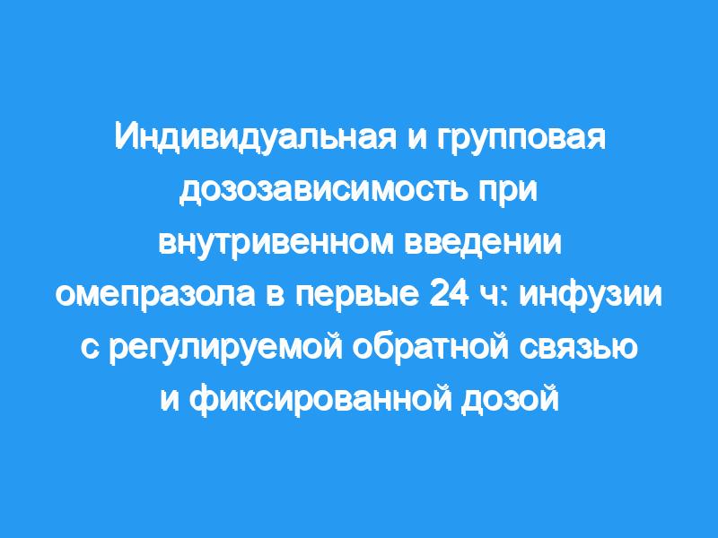 2. Индивидуальные реакции на дозу в первые 24 ч инфузий омепразола в фиксированной дозе и с обратной связью по рН оценивались в двух рандомизированных слепых перекрестных исследованиях, проведенных третьей стороной, с использованием двух отдельных групп из восьми здоровых субъектов.