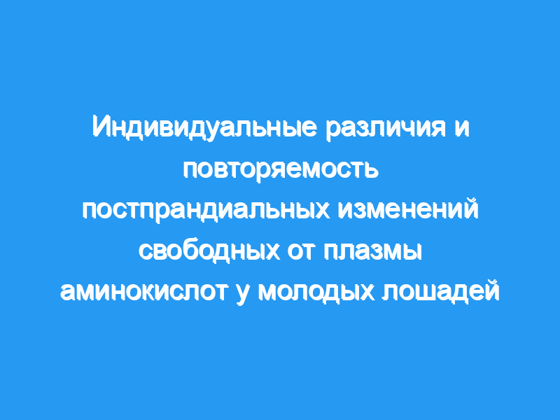 Имеется мало данных о постпрандиальных изменениях аминокислот (АА) в плазме крови лошадей, а также о повторяемости и индивидуальных различиях в разные дни отбора проб.