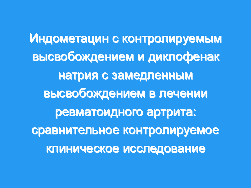 Эффективность и переносимость новой таблетки индометацина с контролируемым высвобождением (75 мг) сравнивали с эффективностью таблетки диклофенака натрия с замедленным высвобождением (100 мг) у 84 пациентов с ревматоидным артритом.