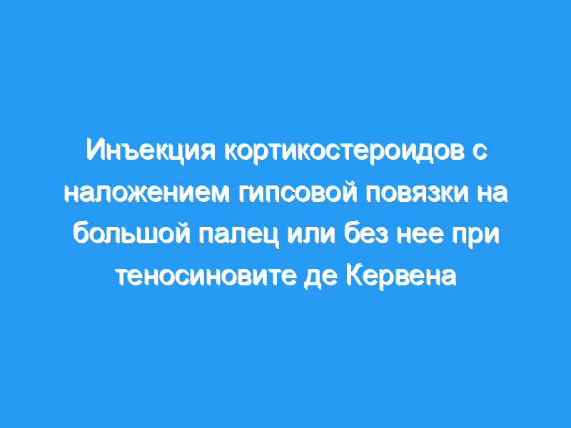 Комбинированный метод инъекции кортикостероидов и наложение шпика на большой палец был лучше, чем одна инъекция при лечении тендовагинита де Кервена, с точки зрения успеха лечения и функциональных результатов. Тип исследования/уровень доказательности: Терапевтический II.
