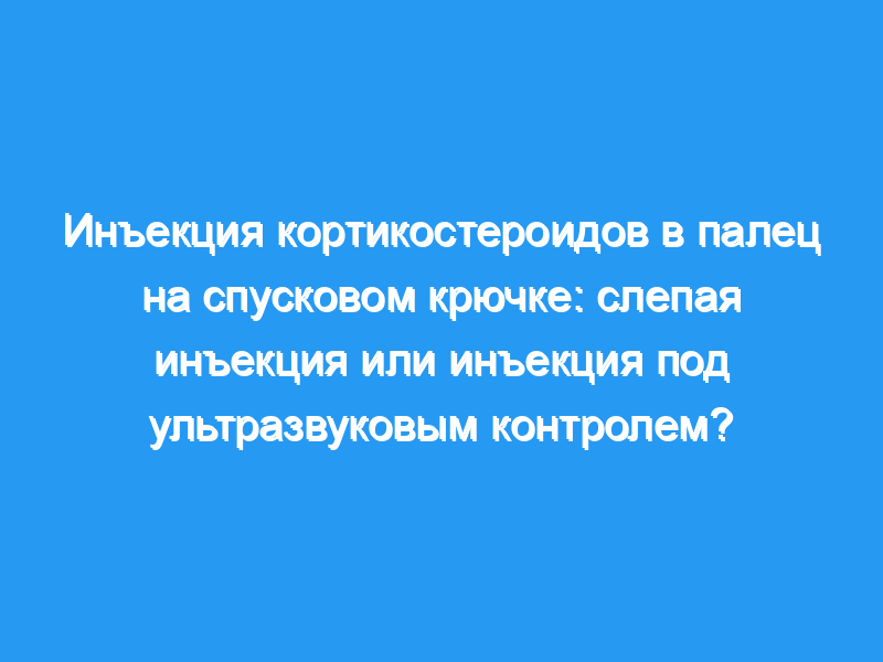 Триггерный палец является одной из наиболее распространенных причин боли и инвалидности в руке. Основой консервативного лечения этого заболевания была местная инъекция стероидов в сухожильную оболочку. Целью этого исследования было изучение клинической пользы инъекции кортикостероидов под ультразвуковым контролем по сравнению с применением вслепую. В это проспективное рандомизированное исследование «случай-контроль» были включены 74 пациента, которые страдали от постоянных или усиливающихся симптомов одной триггерной цифры. Всем пациентам была проведена инъекция 40 мг/1 мл ацетата метилпреднизолона в оболочку сухожилия сгибателя на уровне шкива А1. Половине пациентов делали инъекции под контролем ультразвука (УЗИ), а половине — без него (группа слепых инъекций, BIG). Были зарегистрированы сопутствующие метаболические заболевания. Во время 6-недельного и 6-месячного последующих обследований оценивалась частота осложнений и необходимость повторной инъекции. Результат оценивался с использованием оценки Квиннелла. Уровень боли оценивали с помощью визуальной аналоговой шкалы.