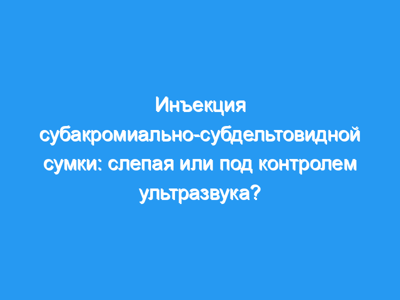 Точность слепой инъекции и инъекции под контролем УЗИ была одинаковой. Во всех случаях жидкость вводилась в бурсу. Интерпретация: Слепая инъекция в SSB так же надежна, как и инъекция под контролем УЗИ, и поэтому может использоваться в повседневной жизни. Инъекции под контролем УЗИ могут стать полезной альтернативой в сложных случаях, например, при изменении анатомии после операции или при отсутствии эффективного клинического результата.