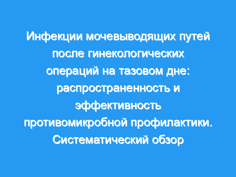 Мы оценили распространенность инфекции мочевыводящих путей (ИМП) после операций на тазовом дне на предмет незлокачественной этиологии и эффективность антибиотикопрофилактики.