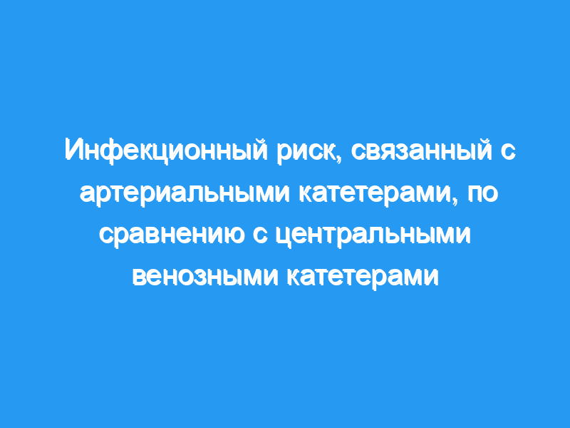 Риски колонизации и инфекции, связанной с катетером, не различались между артериальными катетерами и центральными венозными катетерами, что указывает на то, что при использовании артериального катетера следует соблюдать те же меры предосторожности, что и при использовании центрального венозного катетера. Ежедневный риск был постоянным с течением времени для центрального венозного катетера после пятого дня катетеризации, но значительно увеличивался с течением времени после седьмого дня для артериальных катетеров. Необходимы рандомизированные исследования для изучения влияния плановой замены артериального катетера.