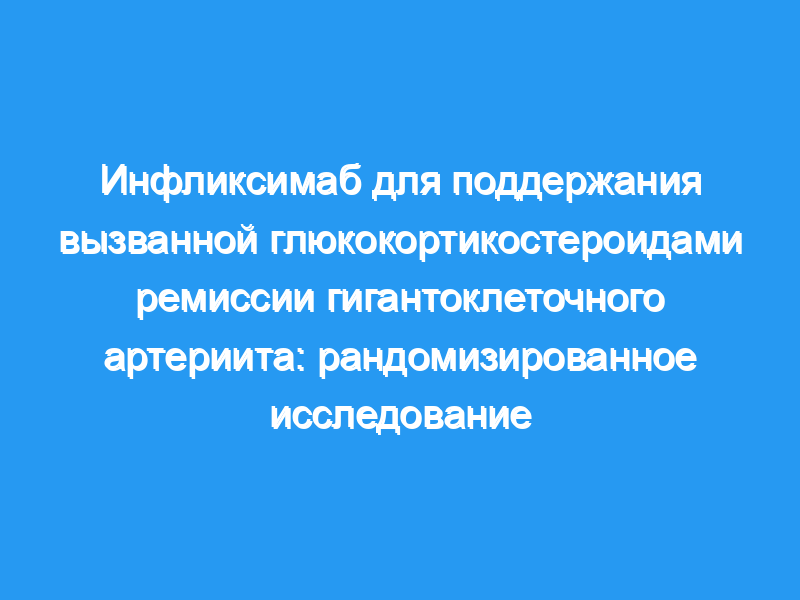 Это исследование слишком мало, чтобы делать окончательные выводы, но оно предоставляет доказательства того, что использование инфликсимаба в качестве поддерживающей терапии у пациентов с недавно диагностированным гигантоклеточным артериитом, вызванным глюкокортикоидами, не приносит пользы и может быть вредным. Если инфликсимаб и принесет пользу, то вряд ли она будет большой. ClinicalTrials.gov регистрационный номер: NCT00076726.