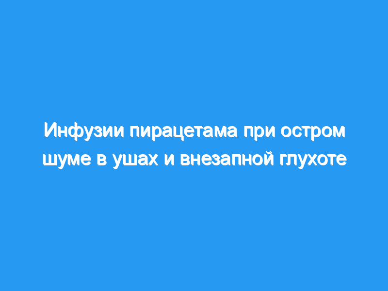 Пирацетам, который улучшает реологические свойства и оказывает положительное влияние на метаболизм, представлял бы особый интерес для лечения острого шума в ушах.