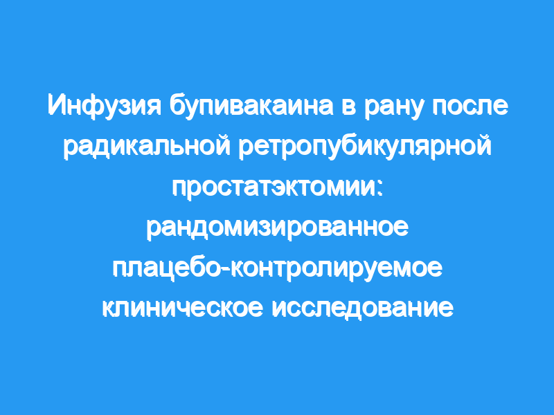 Проверить гипотезу о том, что местная инфузия бупивакаина в рану с последующей непрерывной инфузией может снизить послеоперационную потребность в опиоидах у пациентов, перенесших ретропубическую простатэктомию. Дизайн: Одноцентровое проспективное двойное слепое плацебо-контролируемое исследование.