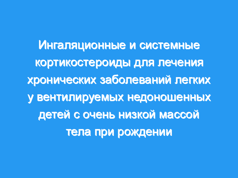 т быть рекомендованы в качестве стандартного лечения для вентилируемых недоношенных детей. Не было никаких доказательств различий в эффективности или профилях побочных эффектов для ингаляционных и системных стероидов. Улучшенная система доставки, гарантирующая селективную доставку ингаляционных стероидов в альвеолы, может привести к благоприятным клиническим эффектам без увеличения побочных эффектов. Чтобы решить эту проблему, необходимы исследования для определения соотношения риска и пользы при различных методах доставки и схемах дозирования для введения этих лекарств. Долгосрочные эффекты ингаляционных стероидов, с особым вниманием к результатам развития нервной системы, должны быть рассмотрены в будущих исследованиях.