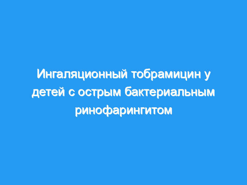 Поскольку местные препараты могут уменьшить это явление, целью нашего исследования было оценить ингаляционный тобрамицин у детей с острым бактериальным ринофарингитом и сравнить его с пероральным амоксициллином/клавуланатом.