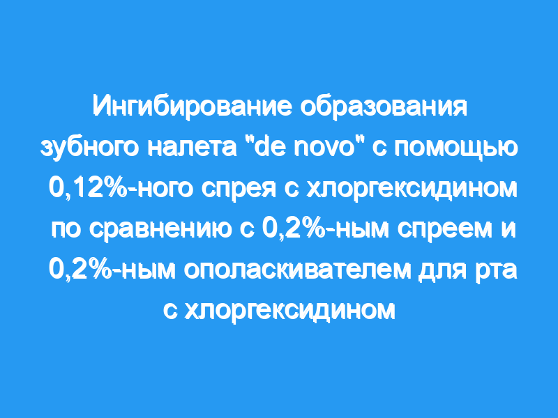 Хлоргексидин (CHX) широко признан наиболее эффективным средством для борьбы с наддесневым налетом. Он доступен в различных устройствах доставки. Целью этого исследования было проверить, был ли 0,12% спрей CHX таким же эффективным, как 0,2% спрей CHX и 0,2% жидкость для полоскания рта CHX в 3-дневной модели образования зубного налета «de novo».