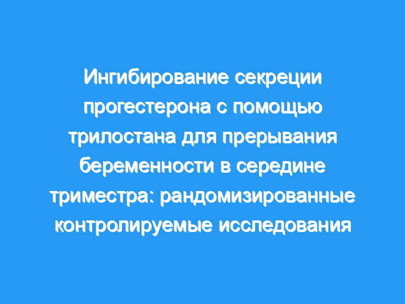 Прогестерон играет центральную роль в поддержании беременности и, таким образом, является идеальной мишенью для регулирования фертильности. Двумя механизмами, с помощью которых прогестерон может быть нацелен, являются: блокада рецепторов и снижение выработки прогестерона за счет ингибирования ферментов. Мифепристон, блокатор рецепторов, обычно назначается в качестве «предварительной обработки» перед введением простагландина при прерывании беременности в середине триместра (ВВЕРХУ). К сожалению, в развивающихся странах существуют трудности с доступом к мифепристону, и поэтому ТОП проводится с использованием только простагландинов, что приводит к недопустимо длительным интервалам между индукцией и абортом. Трилостан является ингибитором 3-бета-гидроксистероиддегидрогеназы, который снижает выработку прогестерона. В этих исследованиях в середине триместра он оценивается как метод предварительной обработки перед введением мизопростола.