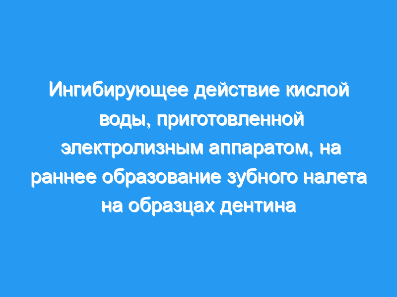 Целью этого исследования было сравнить воздействие кислой воды, приготовленной с помощью электролизного аппарата, с обработкой плацебо на ультраструктуру раннего зубного налета, образовавшегося на образцах дентина, прикрепленных к фиксаторам в полости рта.