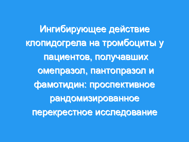 Высказывались опасения по поводу ингибирующего действия ингибиторов протонной помпы (ИПП) на метаболизм клопидогрела. Поскольку фармакологический эффект клопидогреля зависит от генетически детерминированной активности системы изоферментов цитохрома Р450 печени, важно изучить взаимодействие между различными ИПП и высокой реактивностью тромбоцитов (HPR) после контроля генетической изменчивости. Целью исследования была оценка влияния 2 ИПП и блокатора рецепторов гистамина-2 (Н2) на реактивность тромбоцитов в перекрестном исследовании, в котором каждый пациент поочередно получал каждый препарат. Гипотеза: Омепразол снижает HPR в большей степени, чем другие ИПП или Н2-блокаторы.
