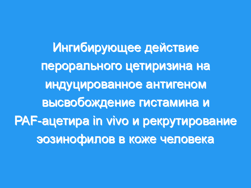 Использование неинвазивного метода кожной камеры in vivo у пациентов, чувствительных к пыльце, позволило нам количественно оценить временное высвобождение гистамина и рекрутирование воспалительных клеток (т.е. нейтрофилов, моноцитов и эозинофилов) в участках кожи, пораженных пыльцой, гистамином и соединением 48/80. Новый антагонист Н1-рецепторов, цетиризин 2 HCl, перорально вводимый по 10 мг один раз в день пациентам, чувствительным к пыльце, в двойном слепом перекрестном исследовании по сравнению с плацебо, вызывал значительное уменьшение кожной реакции, вызванной внутрикожной инъекцией пыльцы, гистамина и соединения 48/80.. Он также значительно ингибировал немедленное высвобождение гистамина, происходящее в кожных камерах после введения пыльцы, в то время как он существенно не ингибировал позднее высвобождение.