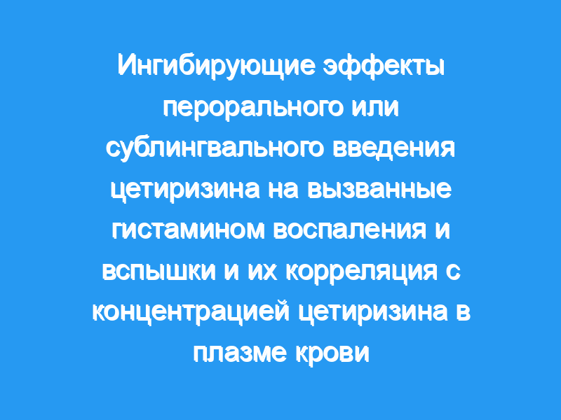Образование как воспалений, так и вспышек значительно подавлялось цетиризином, вводимым любым путем, weals ингибировались уже через 20 мин после перорального приема, но явно не ингибировались до 90 мин после сублингвального приема.