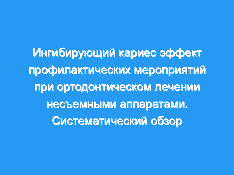 Был проведен систематический обзор опубликованных данных об ингибирующем кариес эффекте профилактических мер во время ортодонтического лечения несъемным аппаратом.