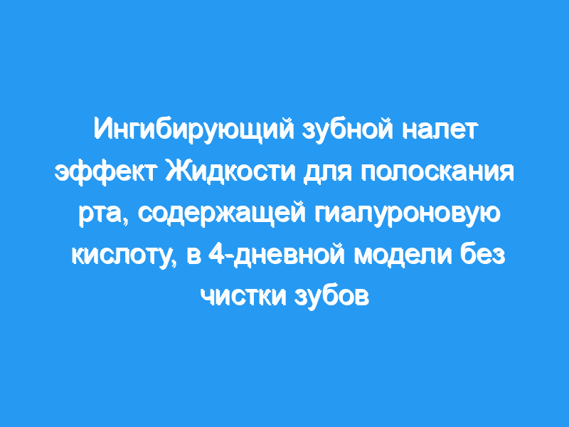 Несмотря на то, что хлоргексидин (CHX) является золотым стандартом противоракового средства, он обладает многими побочными эффектами, которые заставляют ученых искать новые средства для борьбы с биопленками, столь же эффективные, как CHX. Гиалуронан, также известный как гиалуроновая кислота (ГК), является природным полисахаридом, обладающим противовоспалительными, антиоксидантными и бактериостатическими свойствами. Цели состояли в том, чтобы оценить ингибирующее образование зубного налета и противовоспалительное действие жидкости для полоскания рта ГК по сравнению с CHX и дистиллированной водой (DW) в 4-дневной модели без чистки зубов, а также предпочтение участников используемым продуктам.