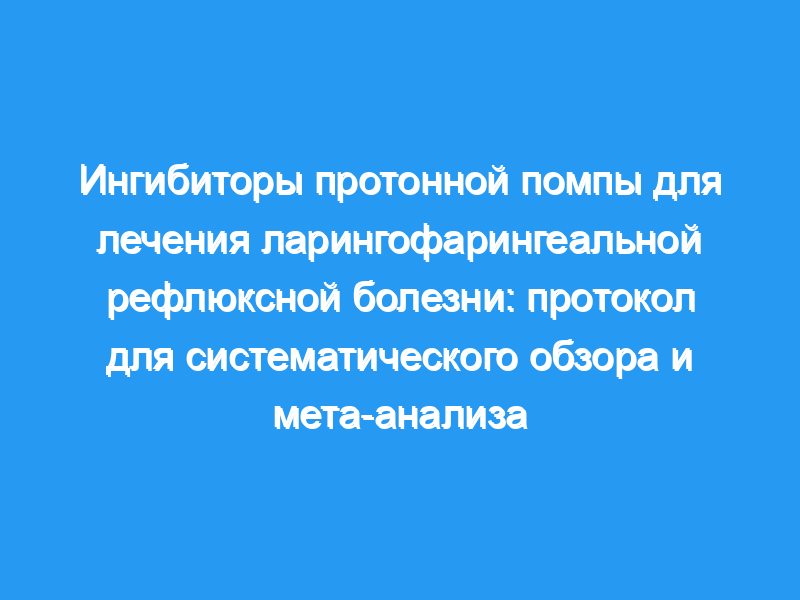 Это исследование предоставит надежные научно обоснованные доказательства клинического применения ингибиторов протонной помпы при лечении ларингофарингеальной рефлюксной болезни.Регистрационный номер OSF: DOI 10.17605 / OSF.IO / NY6SC.