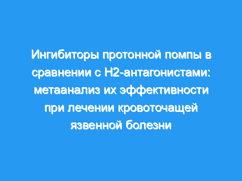 Оценить, являются ли ингибиторы протонной помпы более эффективными, чем Н2-антагонисты (Н2-А), для лечения кровоточащей язвенной болезни. Источники данных: база данных PubMed до января 2000 года. Выбор исследования: Сравнительные рандомизированные испытания ингибиторов протонной помпы (омепразола, лансопразола или пантопразола) против H2-A (циметидина, ранитидина или фамотидина). Извлечение данных: Метаанализ, объединяющий коэффициенты шансов (ИЛИ) отдельных исследований в глобальную ИЛИ (метод Пето). ОЦЕНИВАЕМЫЕ ИСХОДЫ: постоянное или рецидивирующее кровотечение, необходимость хирургического вмешательства или смертность. Обобщение данных: Одиннадцать исследований соответствовали критериям включения и содержали данные по крайней мере для одного из запланированных сравнений. О постоянном или рецидивирующем кровотечении сообщалось у 6,7% (95% ДИ: 4,9-8,6%) пациентов, получавших ингибиторы протонной помпы, и у 13,4% (95% ДИ: 10,8-16%) пациентов, получавших H2-A (OR 0,4, 95% ДИ: 0,27-0,59) (chi2-тест на однородность, 18, Р=0,09). Хирургическое вмешательство потребовалось у 5,2% (95% ДИ: 3,4-6,9%) пациентов, получавших ингибиторы протонной помпы, и у 6,9% (95% ДИ: 4,9-8,9%) пациентов, получавших H2-A (OR 0,7, 95% ДИ: 0,43-1,13). Соответствующие проценты смертности составили 1,6% (95% ДИ: 0,9-2,9%) и 2,2% (95% ДИ: 1,3-3,7%) (ИЛИ 0,69, 95% ДИ: 0,31-1,57). СУБАНАЛИЗ: В пяти исследованиях оценивалось влияние обоих методов лечения, вводимых в виде болюсных инъекций, на частоту постоянных или рецидивирующих кровотечений, которая составила 6% (95% ДИ: 3,6-8,3%) и 8,1% (95% ДИ: 5,3-10,9%) соответственно (ИЛИ 0,57, 95% ДИ: 0,31-1,05). Постоянные или рецидивирующие кровотечения у пациентов высокого риска (Forrest Ia, Ib и IIa) имели место у 13,2% (95% ДИ: 7,9-8%) пациентов, получавших ингибиторы протонной помпы, и у 34,5% (27-42%) пациентов, получавших H2-A (ИЛИ 0,28, 95% ДИ: 0,16-0,48). У пациентов, не получавших эндоскопическую терапию, о постоянном или рецидивирующем кровотечении сообщалось, соответственно, у 4,3% (95% ДИ: 2,7-6,7%) и у 12% (95% ДИ: 8,7-15%) (ИЛИ 0,24, 95% ДИ: 0,13-0,43). Менее выраженные различия наблюдались у пациентов, получавших дополнительную эндоскопическую терапию: 10,3% (95% ДИ: 6,7-13,8%) и 15,2% (11,1-19,3%) (ИЛИ 0,59, 95% ДИ: 0,36-0,97). Более того, значимость исчезла в этой группе, когда было исключено одно исследование с выбросами.
