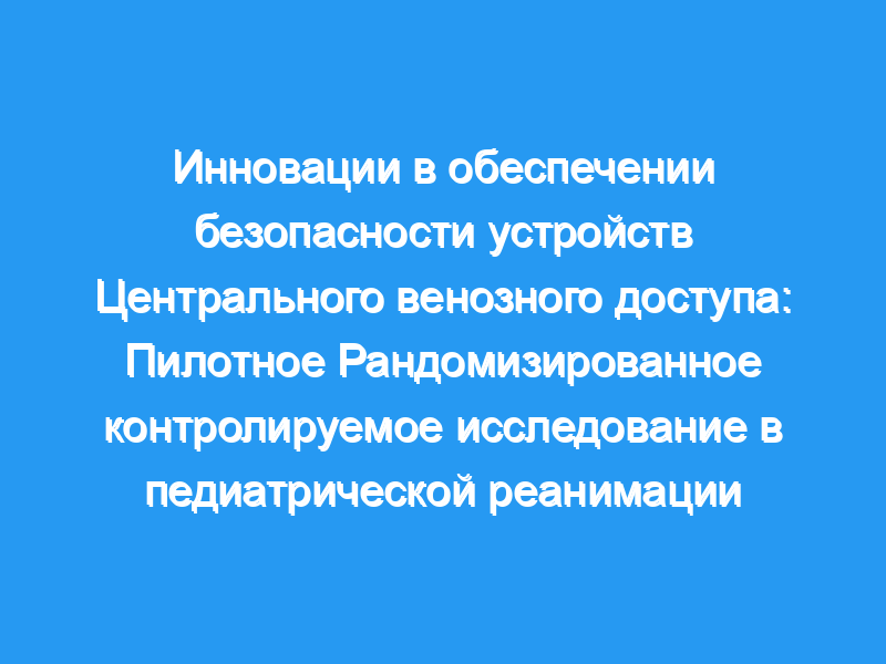 Устройства центрального венозного доступа позволяют проводить многие виды лечения во время критических состояний, однако 25% педиатрических устройств центрального венозного доступа выходят из строя до завершения лечения из-за инфекции, тромбоза, смещения и окклюзии. Это часто объясняется неадекватным закреплением и перевязкой устройства, однако высококачественных исследований, оценивающих инновации в области крепления устройства для центрального венозного доступа у детей для предотвращения отказа устройства для центрального венозного доступа, недостаточно. Целью этого исследования было установить возможность проведения окончательного рандомизированного контрольного исследования, в котором изучалась эффективность современных и новых технологий для обеспечения центрального венозного доступа в педиатрии. Дизайн: Одноцентровое, параллельное групповое, первенство, пилотное рандомизированное контрольное исследование.