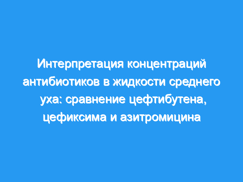 Это исследование демонстрирует, что на проникновение антибиотиков в жидкость среднего уха влияют их концентрации в сыворотке, а также содержание клеток в жидкости. Цефтибутен достигал более высоких концентраций жидкости в среднем ухе, чем цефиксим, в С+ и С-фракциях во все моменты времени. Содержание клеток в жидкости отрицательно влияет как на концентрацию цефтибутена, так и на концентрацию цефиксима. Напротив, на концентрацию азитромицина в жидкости среднего уха положительно влияет содержание клеток в жидкости.