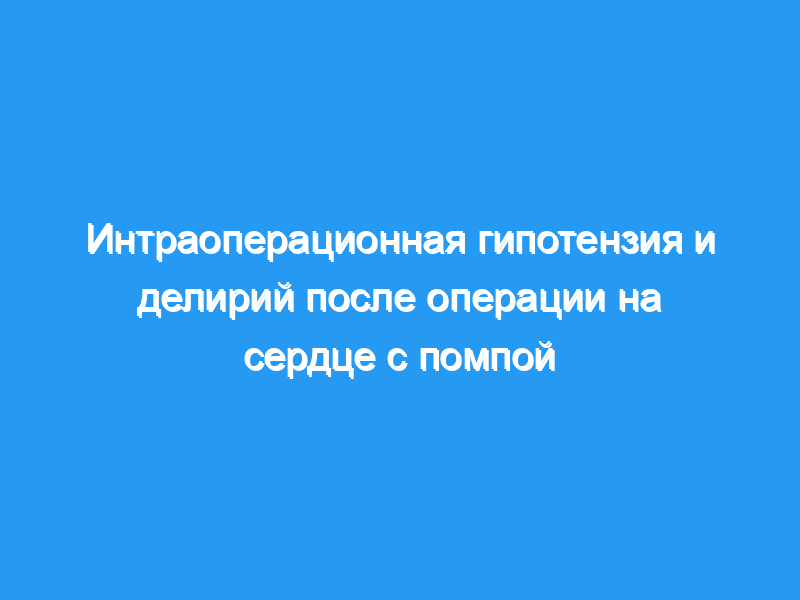 Делирий является распространенным осложнением после кардиохирургических операций и может быть результатом недостаточной мозговой перфузии. Мы изучали делирий после кардиохирургических операций в связи с интраоперационной гипотензией (IOH).