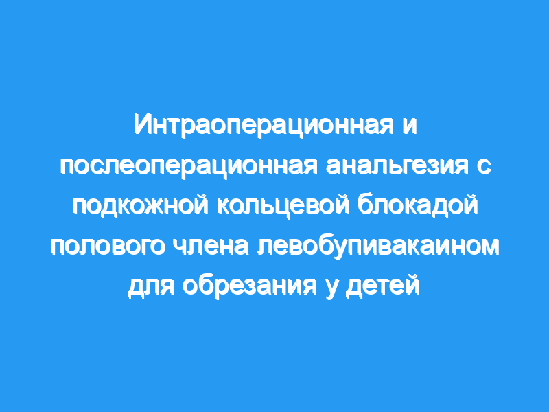 Цель исследования — оценить как эффективность кольцевой блокады полового члена левобупивакаином в предотвращении интраоперационной и послеоперационной боли, связанной с обрезанием у детей, так и качество восстановления.