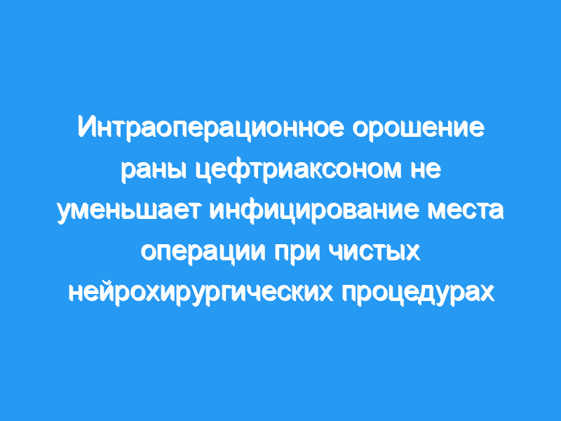 Спектр послеоперационных инфекций в нейрохирургической практике включает инфекцию кожи головы, остеомиелит костного лоскута, менингит и внутричерепные абсцессы и связан со значительной заболеваемостью и смертностью. В разных нейрохирургических центрах существуют большие различия в использовании периоперационной антибиотикопрофилактики. Целью данного исследования было определить, обеспечивает ли орошение интраоперационной раны цефтриаксоном дополнительную профилактику инфекции в месте операции (SSI) у пациентов, уже получающих препарат парентерально.