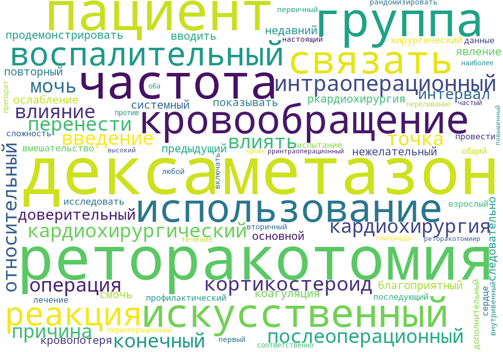 Кардиохирургия с использованием искусственного кровообращения связана с системной воспалительной реакцией. Для ослабления этой воспалительной реакции вводят интраоперационные кортикостероиды. Недавнее исследование дексаметазона для кардиохирургии (DECS) не смогло продемонстрировать благоприятное влияние дексаметазона на основные нежелательные явления у кардиохирургических пациентов. Предыдущие исследования показывают, что кортикостероиды могут влиять на послеоперационную коагуляцию и кровопотерю и, следовательно, могут влиять на риск повторных хирургических вмешательств. Мы исследовали влияние профилактического интраоперационного лечения дексаметазоном на частоту реторакотомий после кардиохирургических операций.